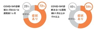 海外での報告では、COVID-19の診断等の後2カ月あるいは、退院等の後1カ月を経過した患者の72.5%が何らかの症状を訴えていました。