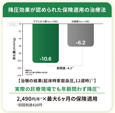 当院B-leafメディカル内科小児科クリニックでもすでに多くの方にご活用いただいており、開始1ヶ月ほどで10mmHg前後の低下を認めております。
